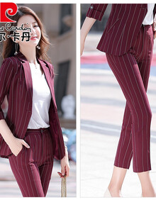 皮尔卡丹西装套装女2021春夏新款韩版气质两件套洋气时尚职业小西服外套薄针织 酒红西装+裤子 2XL