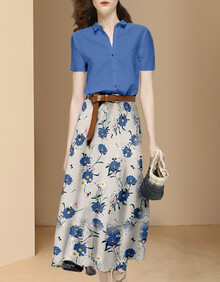 【显气质】【抢一件】2021年新款夏装女神范时尚套装女纯色上衣a字半裙两件套5970 图片色 XXL(建议120-130斤)