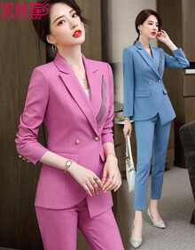 安依莲职业装女套装不对称小西装春夏新款韩版时尚名媛西服女装气质主持人西装正装高级白领工作服 9931紫色西装 XL