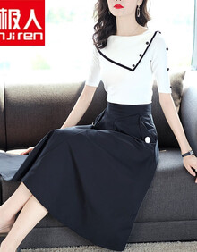 南极人轻奢女装夏季中长款ol通勤职业气质针织衫修身收腰a字裙两件套套装装连衣裙女 白色 XL