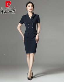 皮尔卡丹高端轻奢 2021新品夏季售楼部连衣裙商务正装气质工装女神范高端职业套装女针织 藏青连衣裙 L