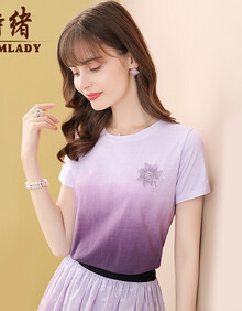 诗绪时尚紫色套装裙短袖上衣半裙两件夏装2021新款女渐变55221 上衣(紫色) M