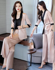 木宸职业装雪纺西服套装女2021韩版时尚气质女神范春秋装休闲西服阔腿裤洋气高端减龄职场套装 图片色 S