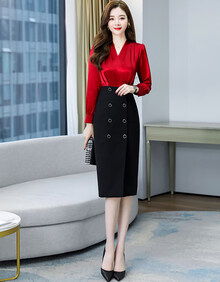恒潮 职业包臀裙套装女2021年春季女装收腰显瘦女神范裙子两潮 红色 S