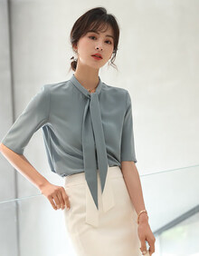 恒源祥官方品牌21夏裙连衣裙新品职业装套装2021年新款女轻熟赫本风半身裙两面试气质女神范夏轻奢明星 蓝色五分袖衬衫 XXL