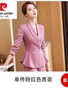 皮尔卡丹黑色西装外套女2021新款春秋正装气质职业西服套装时尚小个子夏季针织 单件粉红色西装 S