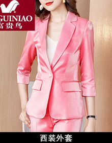 富贵鸟轻奢新品 亮丝小西装女套装初秋职业装气质时尚轻奢粉色西服外套女炸街西装 西装外套 L