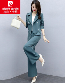 皮尔卡丹女装【品牌上新】职业小西装套装女2021年早春装新款商务休闲气质时尚减龄阔腿裤两件套 XL湖蓝色