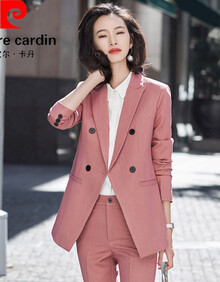 法国皮尔卡丹 小西装外套女2021新款粉色气质女神范名媛正装西服职业套装针织 单件粉色西装 S