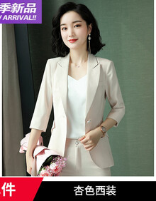 职业装西装套装女薄款2021夏季韩版气质休闲两件装洋气小西服外套 杏色西装 M