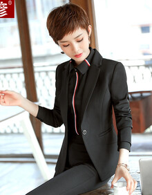 飞彦秋冬新款职业装女装套装大码修身长袖小西服女外套白领面试正装酒店前台工作服女士黑色小西装 黑色单西装 4XL