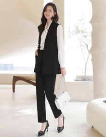 高端轻奢职业套装裤女款2021春秋新款气质女神范西服马甲西装三件套 黑色 M