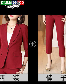 卡帝乐鳄鱼轻奢品牌职业套装女2021年春秋新款小西装外套女韩版气质时尚小西装套装女红色 西装+子 XL