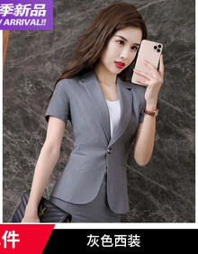 短袖西装套装女职业装气质女神范2021夏季新款正装套裙酒店工作服 短袖灰色西装 S