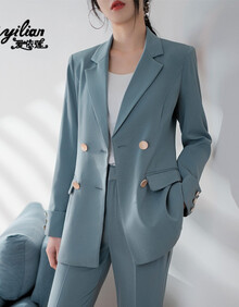 爱依莲轻奢感西装外套女薄款春秋休闲英伦风炸街小西服宽松大码职业套装 蓝色 西装 S