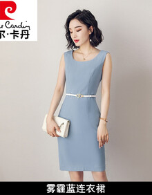皮尔卡丹高档品牌女装 通勤连衣裙女夏正装裙气质工作服裙子女装高端职业装西装套装夏季针织 单件无袖蓝色连衣裙 S