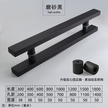 加厚不锈钢大拉手玻璃门大门拉手黑色有无框门把手推拉门扶手对装 磨砂黑 300mm总长(200mm孔距)