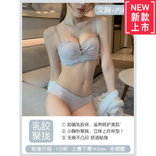 【官方精品】高档轻奢品牌无肩带内衣女薄款夏季小胸聚拢收副乳防下垂乳胶无痕防滑文胸套装曼妮黑白芬 奶灰【套装】 75/34B