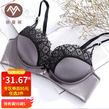 依曼丽内衣女聚拢小胸无钢圈文胸 舒适性感上托收副乳调整型胸罩 深灰 70B