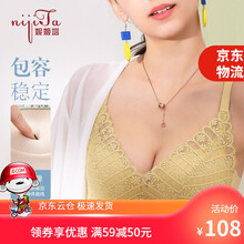 妮姬塔内衣女文胸上薄下厚AB杯收副乳侧收无钢圈小胸聚拢调整型乳胶杯性感蕾丝胸罩Z6806 雅姜黄 34/75AB