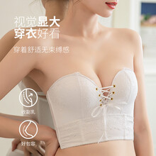 轻奢无肩带内衣女聚拢防滑小胸抹胸上托隐形婚纱专用收副乳文胸贴 白色套装【带气垫】 70A