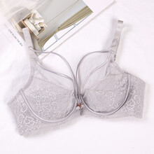 安致儿 内衣女薄款聚拢性感蕾丝文胸透气显胸小软钢圈胸罩收副乳调整文胸 灰色 40/90BC