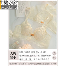 莫代尔 蕾丝内衣聚拢内衣女大胸显小bra聚拢收副乳防下垂无钢圈性感蕾丝文胸套装 米白【套装】 80/36A