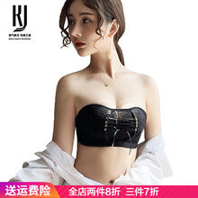 法国KJ无钢圈文胸无肩带隐形内衣小胸聚拢上托防滑裹胸美背抹胸女士蕾丝品牌胸罩结婚婚纱礼服奶罩 黑色单件 75B=34B