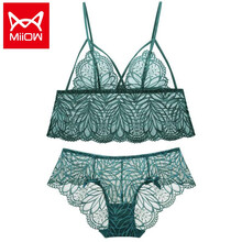 猫人(MiiOW ) 内衣女超透明透气无钢圈蕾丝性感小胸显大文胸套装 墨绿色 文胸+内裤 保障 S32/70ABC