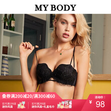 MYBODY内衣女聚拢文胸美背1/2罩杯调整型收副乳小胸显大性感蕾丝侧收防下垂胸罩DS103123 黑色 70B