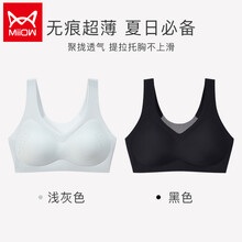 猫人内衣女无痕文胸冰丝薄款夏聚拢无钢圈胸罩性感美背运动背心乳罩 【两件装】浅灰色+黑色 M