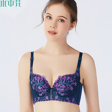 水中花薄款文胸 优雅刺绣加高侧比夹棉杯聚拢型内衣518257 夜幕蓝 75B