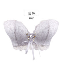 无肩带内衣女聚拢防滑上托隐形文胸贴小胸用裹胸抹胸式大胸美背夏 蕾丝灰色 85D【薄杯】