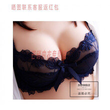 漯岚 女士性感胸罩乳头全透明聚拢文胸大码半罩杯蕾丝V 蓝色 80E