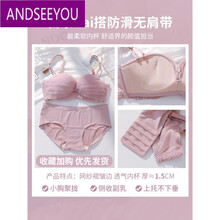 ANDSEEYOU轻奢品牌 蕾丝内衣套装 日系少女小胸聚拢内衣无肩带性感蕾丝胸罩无钢圈文胸套装 紫色(套装) 34/75B