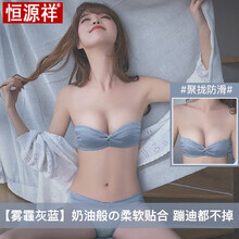 恒源祥官方旗舰专卖无肩带文胸聚拢防滑小胸显大内衣女薄款夏无钢圈性惑套装裹胸抹胸 浅蓝色-套装 70B