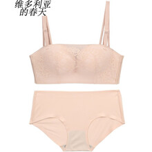 维多利亚的春天旗舰肩带文胸聚拢防滑 蕾丝防走光抹胸式内衣女 无钢圈隐形美背胸罩 肤色 70B