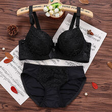 霜中途单件/套装 蕾丝内衣有钢圈聚拢少女薄款文胸防下垂调整型上托胸罩 黑色【套装】 40/90BC【通杯】