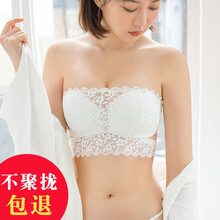 法国KJ无肩带文胸防走光抹胸内衣女聚拢防滑上托隐形文胸贴女婚纱小胸 白色 75A=34A(配M码内裤)