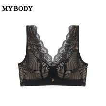mybody文胸内衣女蕾丝无钢圈小胸聚拢收副乳调整型文胸罩 DS102057 黑色 85B