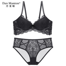 丹曼顿性感内衣女小胸聚拢调整型收副乳防下垂上托文胸套装蕾丝胸罩 黑色套装 70D/32D