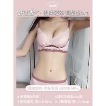 SEEMAX轻奢品牌 蕾丝文胸套装 薄款内衣女士调整型小胸聚拢无钢圈收副乳防下垂蕾丝文胸罩套装 虾粉套装 75/34AB【舒适透气】