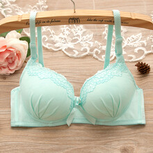无钢圈文胸薄款夏季日系少女小胸聚拢胸罩蕾丝可爱中学生内衣文胸 661#天蓝色 34/75 AB杯通用