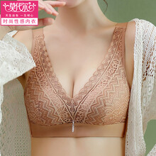 莫代尔高端蕾丝工艺内衣平胸小胸显大文胸无钢圈舒爽透气加厚聚拢调整型胸罩 卡其 38/85B