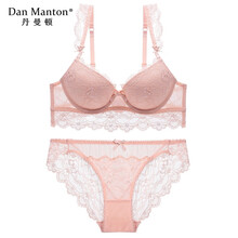 丹曼顿红色内衣套装女小胸聚拢薄性感蕾丝文胸本命年上托防下垂调整型胸罩 粉色套装 75B/34B