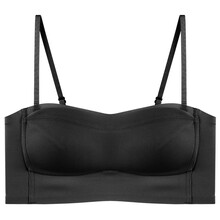 歌力诺抹胸式内衣女薄款无痕小胸聚拢裹胸无钢圈肩带防走光文胸罩 黑色 32/70 适合70A/B