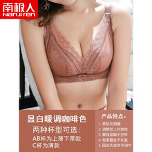 南极人文胸内衣女蕾丝内衣裤无钢圈调整型上托收副乳胸罩小胸聚拢女防下垂文胸 NSDYT-854-咖啡色(单件) 38B/85B