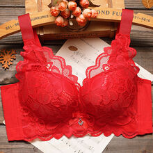 都市白色丽人内衣女无钢圈小胸厚款调整型收副乳舒适胸罩加厚性感蕾丝聚拢文胸 红色 80A