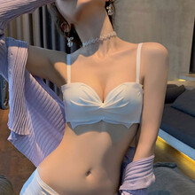 BOQILIN品牌无肩带内女小胸聚拢薄款无钢圈上托防滑调整型文胸套装光面夏天胸罩 白色 70C=32C(配套内裤)