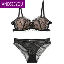ANDSEEYOU轻奢品牌 时尚文胸女 刺绣文胸女性感蕾丝聚拢文胸套装本命年红女士内衣胸罩 黑色 75B
